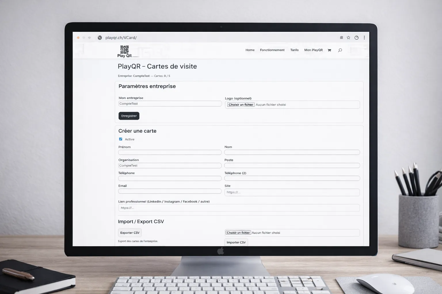 PlayQR permet aussi de créer et gérer des cartes de visite QR dynamiques pour vos collaborateurs et votre entreprise.